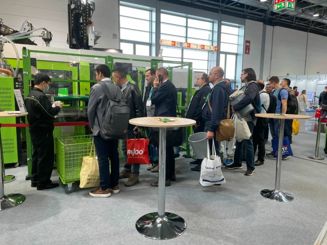 此次K展,全电驮式多物料机现场展示三色隔热水杯成型方案,搭配智能开模控制和智能注射重量控制功能,以及采用DCPC控制的独立转轴模块和柔性组合独立电动射台,电脑配置15寸全新设计专用电脑,整个方案高效、低能耗,是伊之密三色成型方案中的一个典型案例。此案例中,三色隔热水杯通过模内焊接工艺一步成型,压缩制造流程,降低人力成本和提升效率。