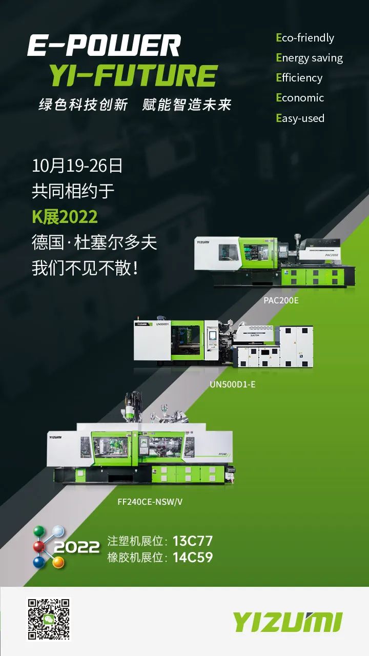 在K展上,伊之密注塑机(展位号:13C77)将以“绿色科技创新 赋能制造未来”为主题参展,聚焦“Eco-friendly(环保)、Energy-saving(节能)、Efficiency(高效)、Economic(经济)、Easy-used(易用)”五大关键词,展出D1-E系列油电注塑机、电动驮式多物料注塑机(C-W系列高端多物料注射成型机)、PAC-E系列全电高速注塑机三大机型,现场将演示汽车侧门IMC面板成型方案、E-Combine三色成型方案、全电高速成型薄壁容器IML系统,共三大注塑成型方案。