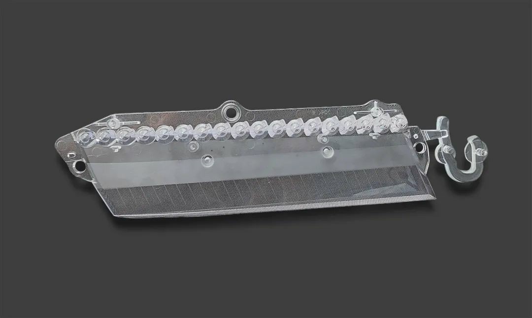 此方案中,多物料厚壁光导件专用机搭载了专用塑化组件,使塑化更均匀、剪切热更低,产品无黑点,无水丝,透光率高;应用高强度免粘设计与多层工艺成型,使生产周期更低,良品率更高,能耗更低。标配液压智能注射功能,整体产品重复精度提升30%。