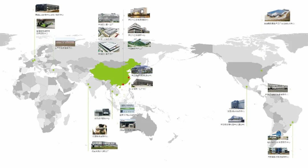 在伊之密的全球布局地图上,清晰标注着其 5 个全球创新平台、12 个技术服务中心以及7个生产基地的坐标(注:数据持续增长)。这不仅是地理上的布局,更是其全球资源整合与技术辐射的有力体现。