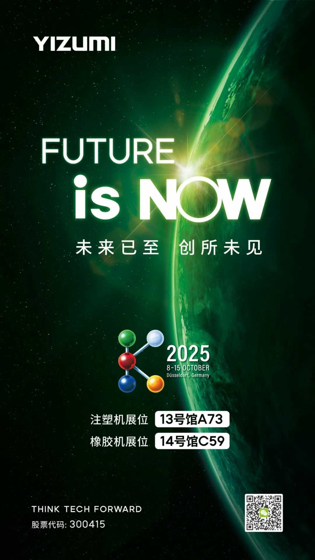 伊之密,作为中国模压成型装备制造业的领军企业,始终以技术创新为核心驱动力,不断诠释“塑料的力量”。此次参展,伊之密以“Future is Now”为主题,彰显了其对未来发展的坚定信心与前瞻视野。