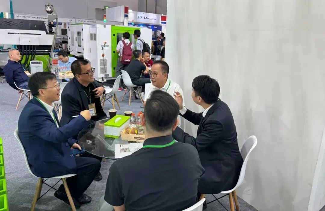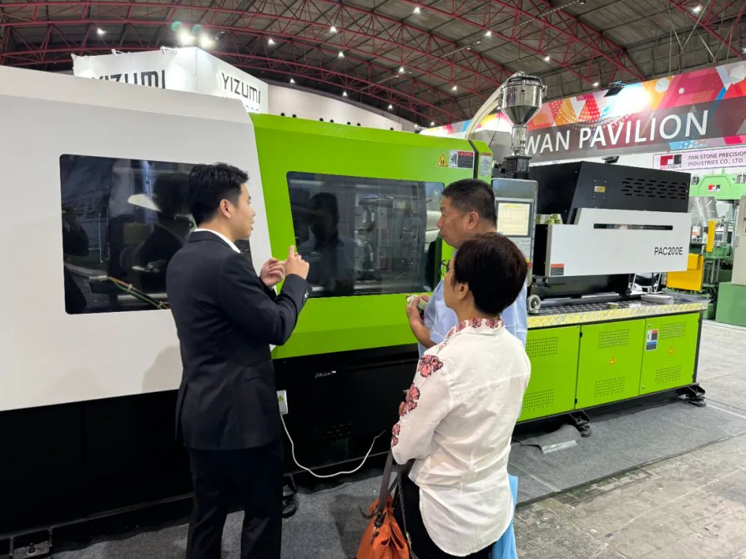 展位上,伊之密董事副总经理、注塑机事业部总经理张涛先生与客户交流