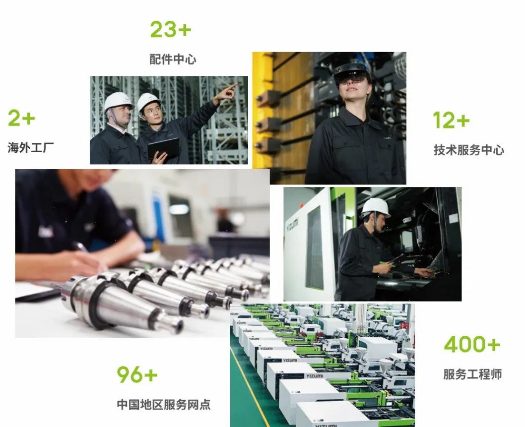 长久以来,伊之密一直致力于为客户提供高效、专业的技术支持和服务。我们的YFO服务理念贯穿始终,确保客户的需求得到快速的响应和专业的解决。伊之密服务支持覆盖全球超246个服务网点和23个备件中心,注塑备件仓库可实现24小时快速发货,本部零件当天出库率高达 96%,确保客户在最短的时间内获得所需配件。