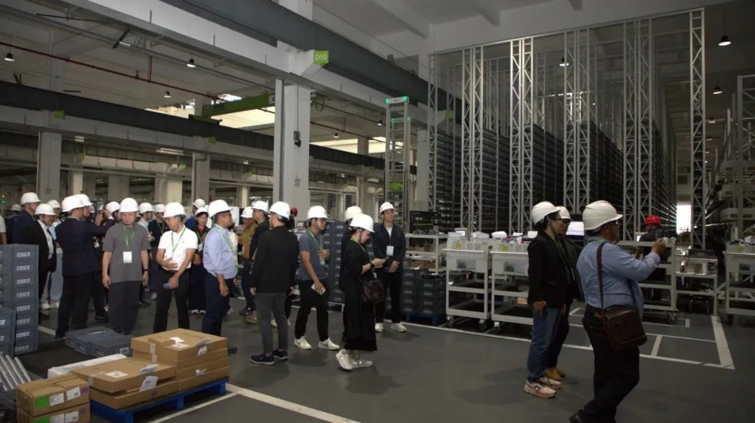 代表团抵达伊之密的第三工厂。该工厂的智能物料运输系统和数字孪生管理平台正在实时交互,展现出全流水线生产模式精准的调度能力,让参观者们不断驻足观看。
